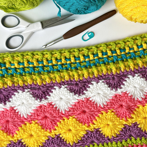 This stitch gives your blanket a cozy, comforting section—like a little textured pause in the middle of the sampler.