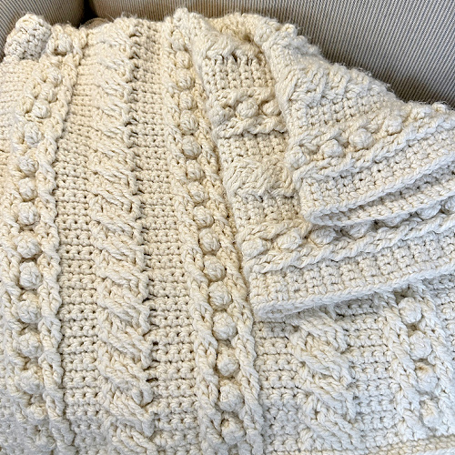 This blanket is all about texture! You’ll work through a variety of techniques that give it that stunning, dimensional look: