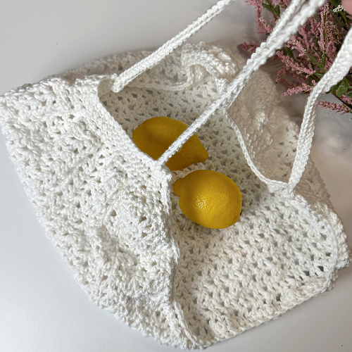 Made with sturdy cotton yarn and an easy-to-memorize stitch pattern, this bag works up quickly and is both practical and stylish.