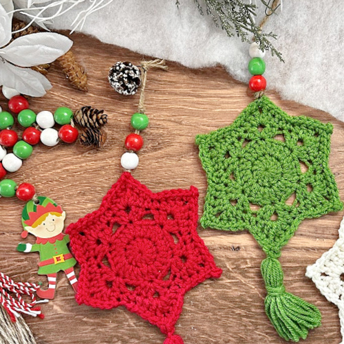 Add a handmade touch to your holiday décor with this Snowflake Christmas Ornament Crochet Pattern. Designed to work up quickly and easily, this festive crochet ornament features a delicate snowflake shape, decorative beads at the top, and a playful tassel hanging from the bottom. It’s the perfect small project for decorating your tree, gifting to friends, or adding to holiday craft fairs.